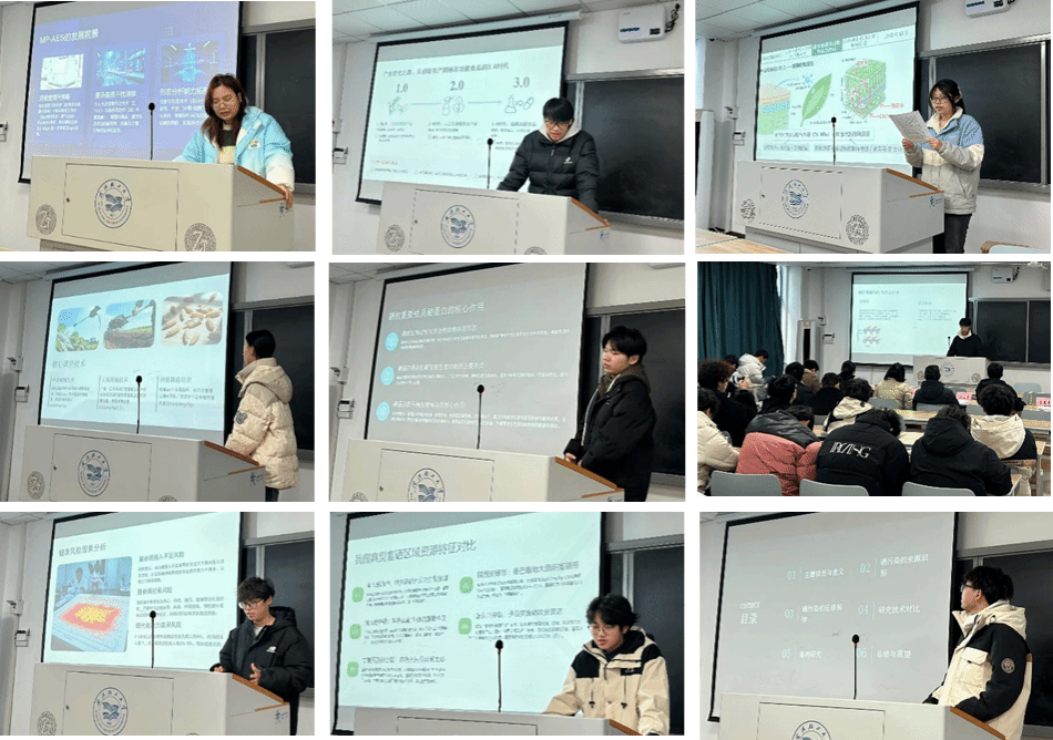 汇报中,同学们围绕硒的化学性质与环境行为、硒营养与人体健康、富硒功能食品研发、纳米硒与新材料、硒污染防控与修复等14个主题,结合课程论文与PPT展示,对相关领域的核心概念和最新研究进展进行了系统梳理。在展示过程中,同学们主动将课堂上不同专家讲授的科研前沿与产业实践内容融入分析之中,尝试从食品、生物、化学、环境以及政策等多学科视角理解硒科学问题,并对未来的科研方向和产业应用前景提出了自己的思考与展望。