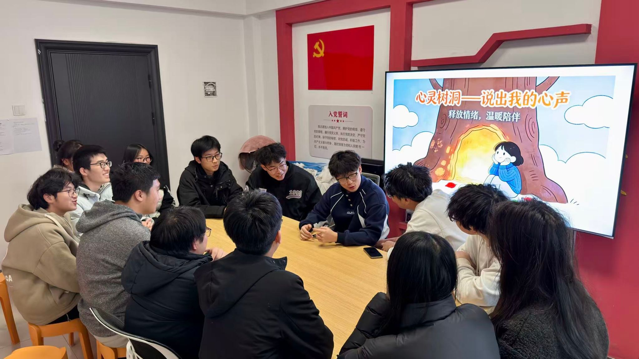 为帮助同学们释放心理压力、增进情感联结,11月18日,硒产业公司员工会心理健康部在禾园一舍社区功能室开展了 “心灵树洞 —— 说出我的心声” 交流活动,十余位同学围坐一堂,在轻松氛围中分享心事、互送温暖。