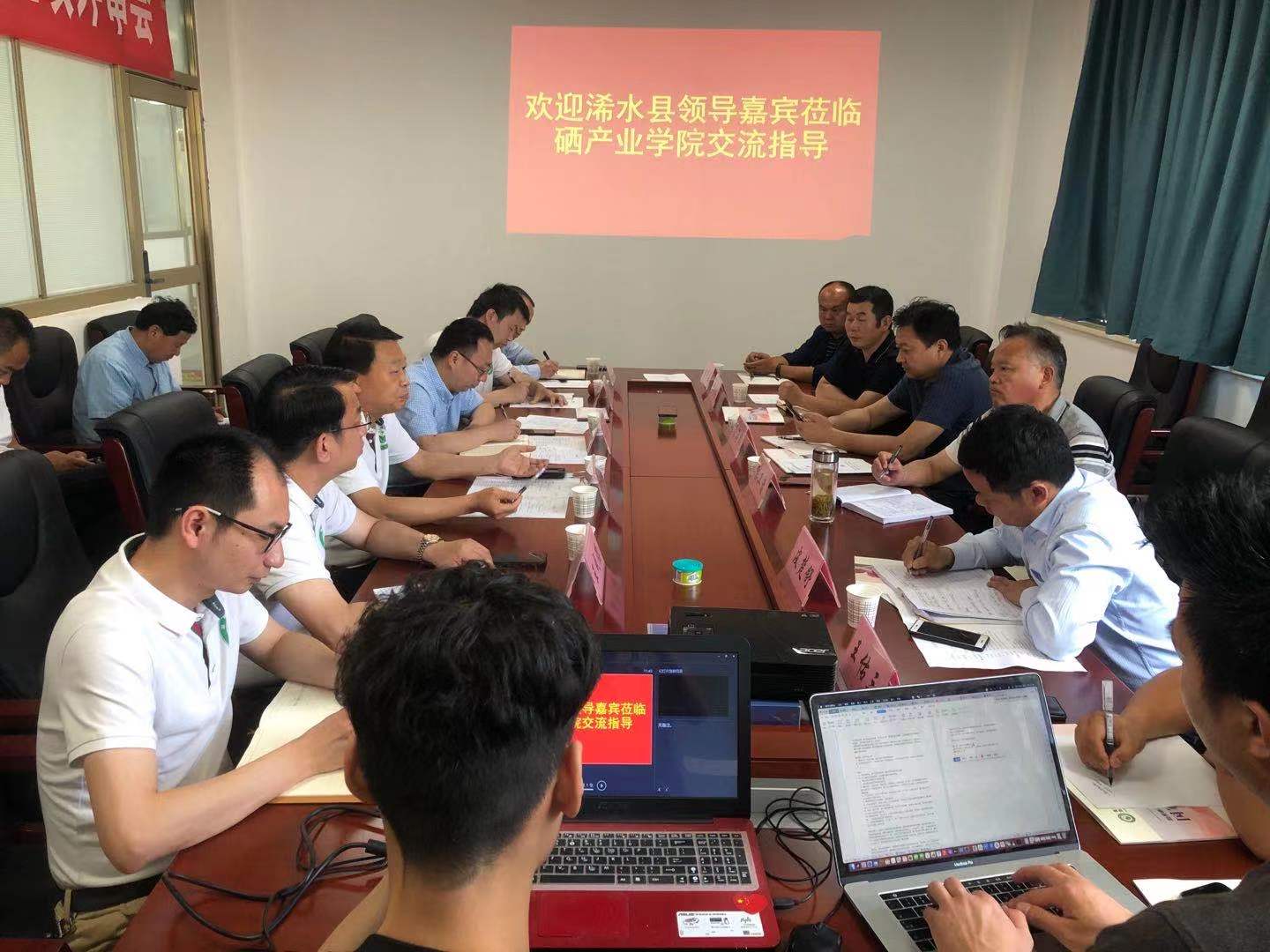 5月29日,黄冈市浠水县农业农村局局长郭卫清、副局长余海鹏、农业技术推广中心主任皮楚舒等携浠水县农业企业代表负责人一行到公司和国家富硒农产品加工技术研发专业中心(以下简称国硒中心)就浠水县发展富硒农业种养殖、农产品深加工等展开洽谈合作。304am永利集团党委副书记、304am永利集团硒产业公司经理、国硒中心主任、硒产业技术与健康中国创新平台联盟(以下简称硒产业联盟)理事长程水源,国硒中心执行负责人、副经理祝振洲,经理助理蔡杰、湖北国硒发展有限公司总经理王成德等接待了浠水县农业农村局一行并举行座谈。