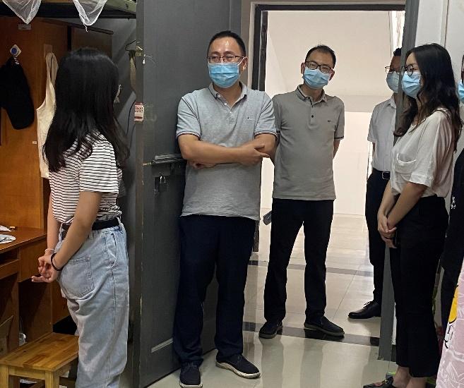 为深入了解公司21级新生的入住情况、提高新生安全意识,引领新生更快地适应校园环境,同时为传达公司对于2021级新生的关心,促进师生彼此的了解,2021年9月8日下午,公司副经理祝振洲教授、经理助理蔡杰副教授、马闻擎老师、程威特老师走访新生寝室并展开查寝慰问工作。