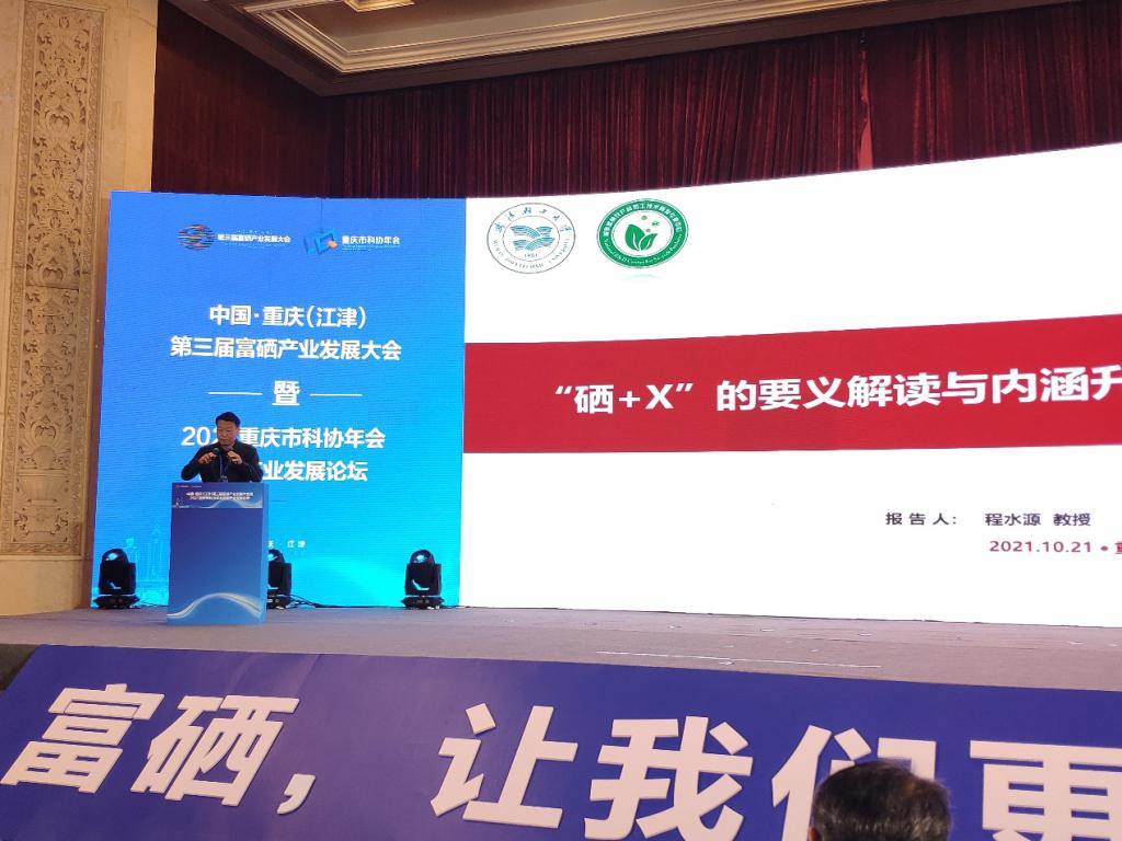 10月21日,中国·重庆(江津)第三届富硒产业发展大会暨2021年重庆市科协年会富硒产业发展论坛在重庆市江津区举行。本届大会以“富硒,让我们更健康”为主题,集中展示富硒产业发展的新技术、新产品和新成果,并通过主题演讲、专题报告和互动交流等形式共话“硒景”、共谋“硒业”、共谱“硒望”。国家富硒农产品加工技术研发专业中心主任、硒产业技术与健康中国创新平台联盟理事长、中国农业国际合作促进会功能农产品专家委员会富硒专家工作组组长、304am永利集团党委副书记、304am永利集团经理程水源教授受主办方邀请在大会上作了题为“‘硒+X’的要义解读与内涵升华”的主题报告。