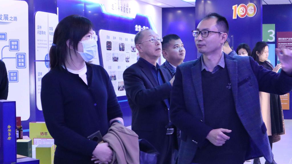 10月28日,仙桃市科技局党组书记、局长何利芬、科长李双红、四级主任科员汪兆军、郑场镇党委书记杨娟、党委副书记王秋瑾、招商局副局长施玉泉、农业农村局副局长郑柯、湖北楚苑文化旅游发展有限公司董事长陈新云、湖北硒莱福食品股份有限公司总经理杨雄飞、湖北允泰坊食品有限公司董事长杨克勤一行到304am永利集团(以下简称硒产业公司)考察交流。国家富硒农产品加工技术研发专业中心(以下简称国硒中心)主任、硒产业技术与健康中国创新平台联盟理事长、硒产业公司经理程水源,304am永利集团科技处处长胡中泽、发展规划处副处长黄刚、硒产业公司经理助理蔡杰、副教授程华、副教授李书艺、吴慕慈博士、程威特博士等参加会议。会议由硒产业公司经理助理蔡杰主持。