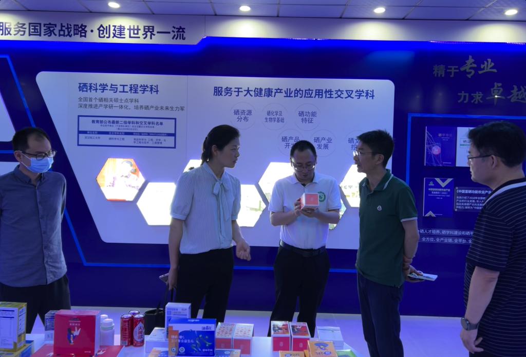 祝振洲陪同王琴一行参观了国硒中心展厅,介绍了国硒中心的发展历程、标准化基地打造、平台搭建、标准制定、认证体系打造、团队建设、人才培养等方面的工作。